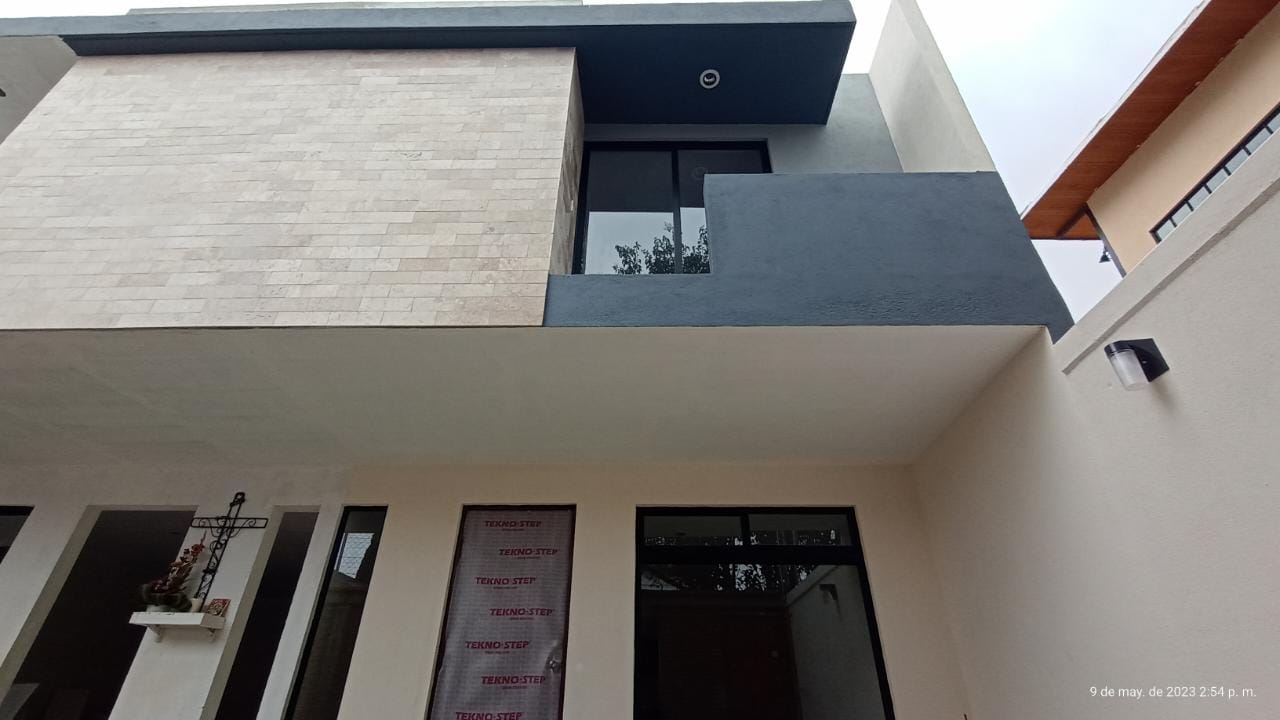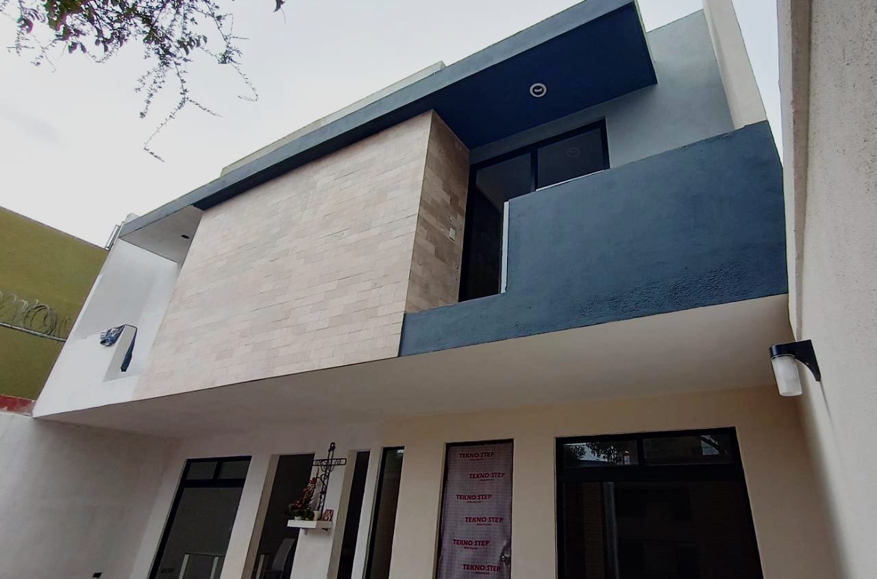 Casas privadas de dos niveles con diseño funcional y acabados de calidad. Cada vivienda cuenta con cocina integral con barra de granito, tres recámaras, dos baños completos, un medio baño, fachada con detalles en mármol y portón cerrado para mayor seguridad.